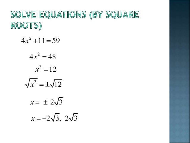 How to solve quadratic equations using the square root method.